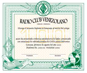 El RADIO CLUB VENEZOLANO, con el fin de fomentar la Radioafición, ha decidido crear y otorgar el "DIPLOMA DX 100", que será expedido de acuerdo a las siguientes bases: