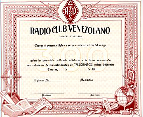 El RADIO CLUB VENEZOLANO, con el fin de fomentar la Radioafición, ha decidido crear y otorgar el "DIPLOMA DX 300", que será expedido de acuerdo a las siguientes bases:
