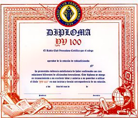 El RADIO CLUB VENEZOLANO, con el fin de fomentar la Radioafición, ha decidido crear y otorgar el "DIPLOMA YV 100", que será expedido de acuerdo a las siguientes bases: