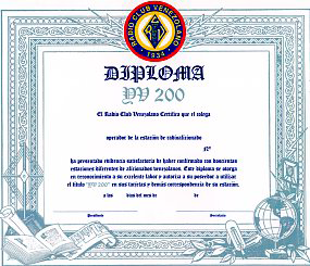 El RADIO CLUB VENEZOLANO, con el fin de fomentar la Radioafición, ha decidido crear y otorgar el "DIPLOMA YV 200", que será expedido de acuerdo a las siguientes bases: