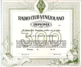 Se otorgará el Diploma a todo aquel Radioaficionado Venezolano o extrangero que demuestre tener confirmación de 300 estaciones diferentes venezolanas independientemente del modo o banda.