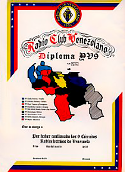 El RADIO CLUB VENEZOLANO, con el fin de fomentar la Radioafición, ha decidido crear y otorgar el "DIPLOMA YV 9", que será expedido de acuerdo a las siguientes bases: